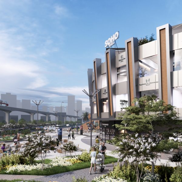 The architectural design of SOHO Mall embodies a modern vision that blends aesthetic appeal with functional efficiency, making it a vibrant commercial and entertainment destination.
